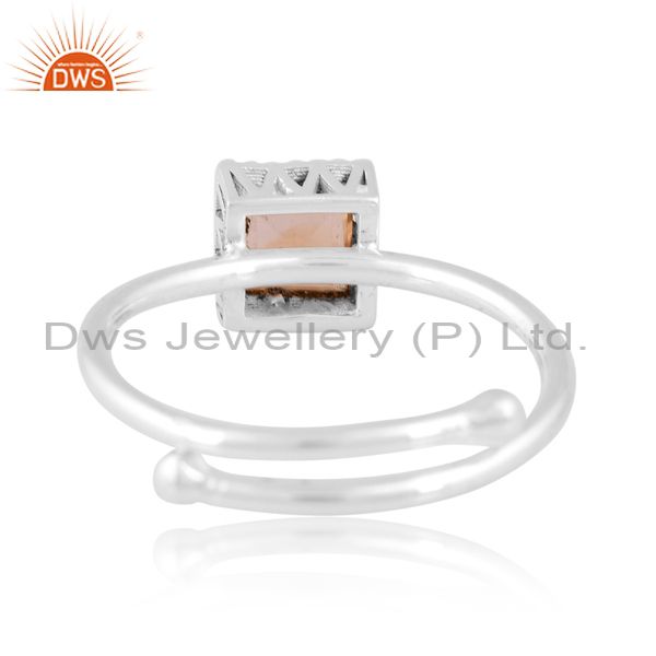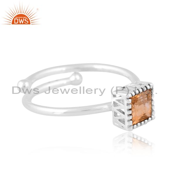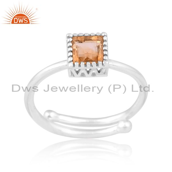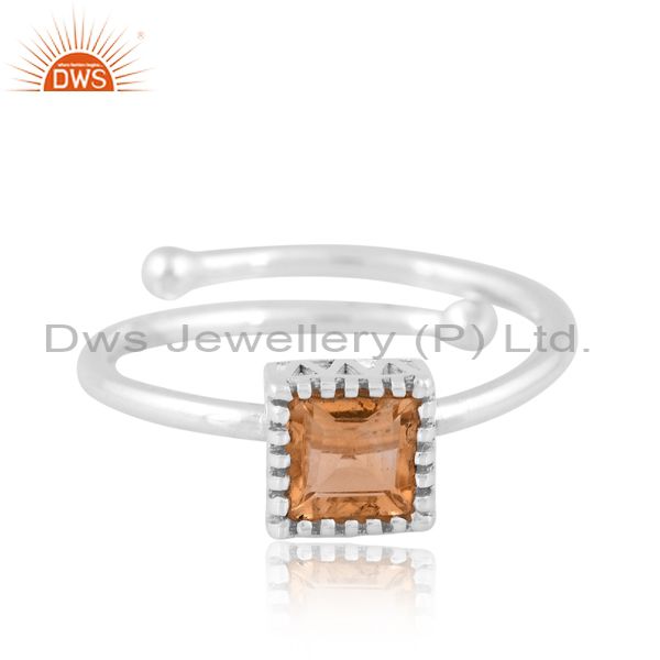 Citrine Acquire Cut Gem On White Sterling Silver Ring