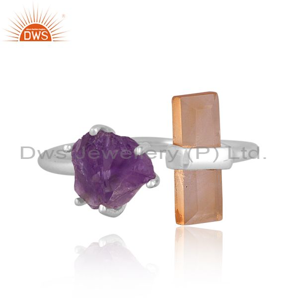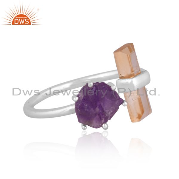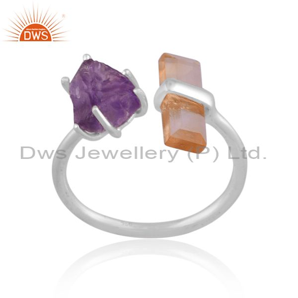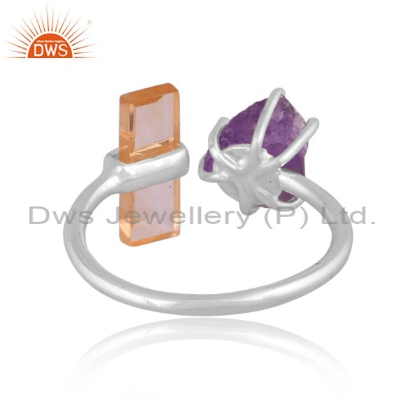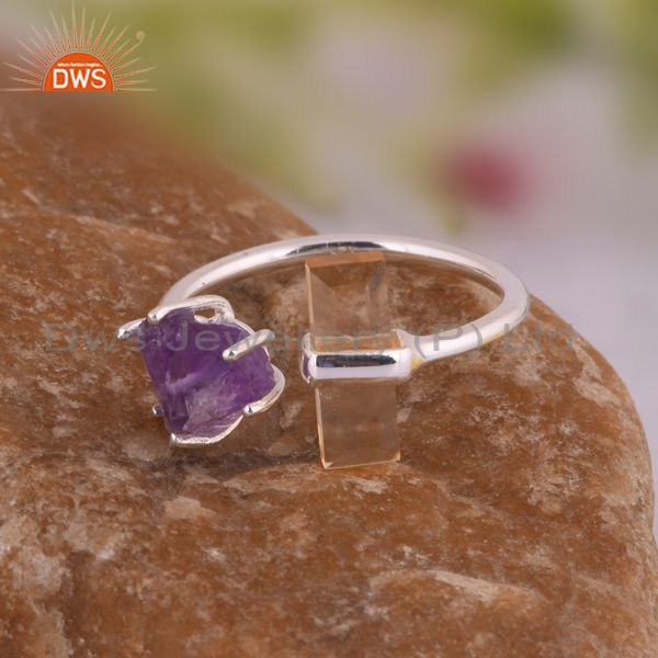 Citrine And Amethyst Set Fine 925 Sterling Silver Open Ring