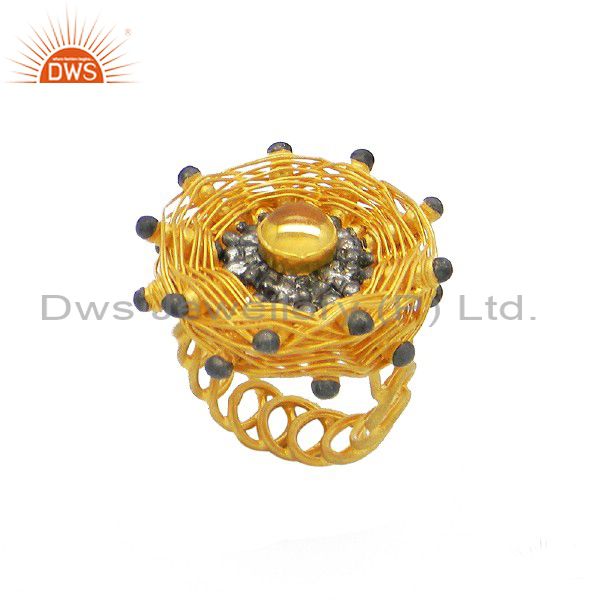 Citrine Gemstone Cocktail Ring Made In 22K Yellow Gold Over Sterling Silver