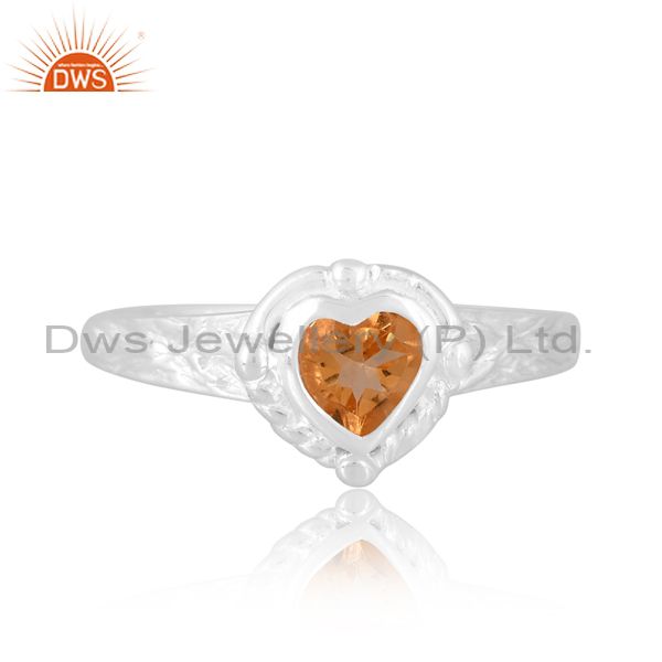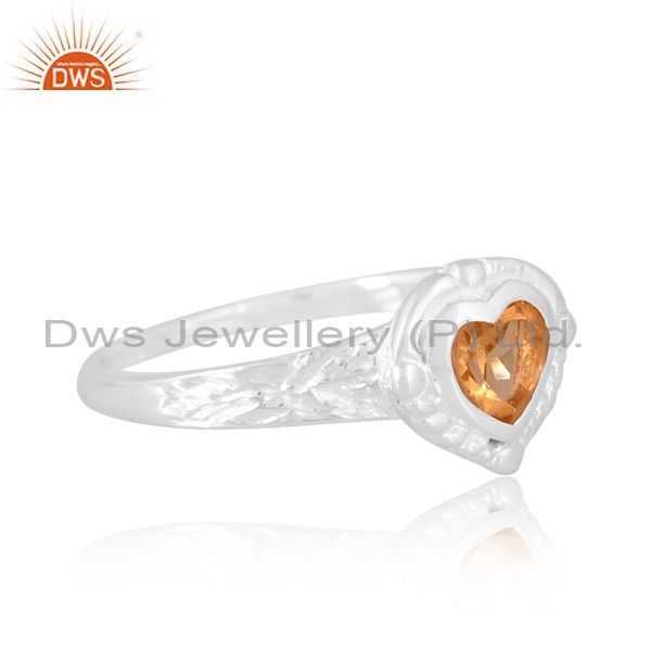 Citrine Heart-Shaped Stone On White Sterling Silver Ring