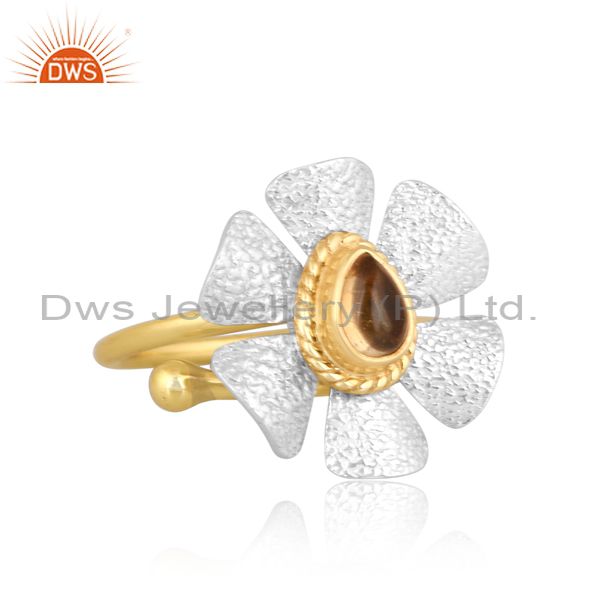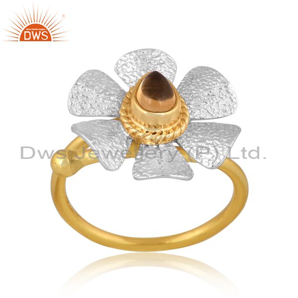 Citrine Set Brass Gold And White Handmade Floral Fancy Ring