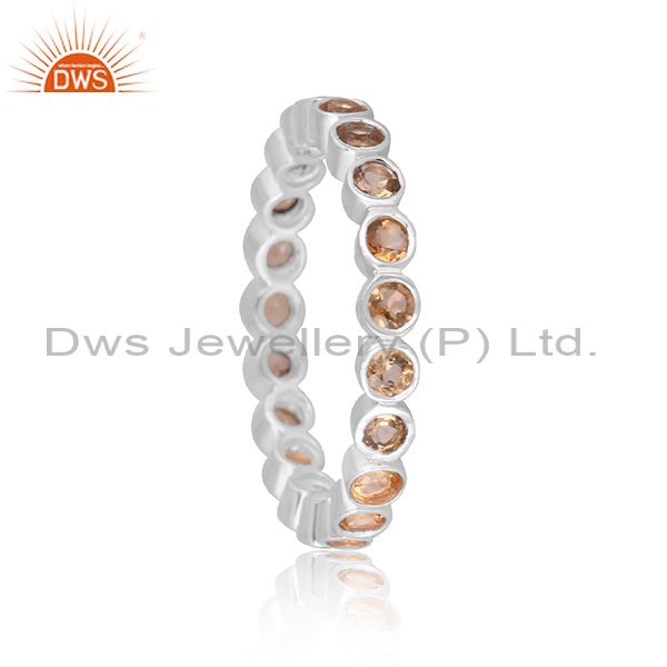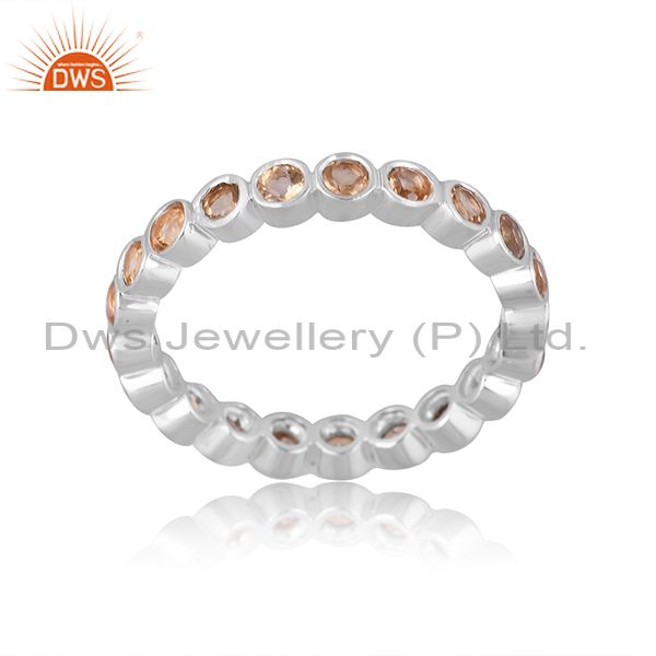 Citrine Set Fine 925 Sterling Silver Classic Band Type Ring
