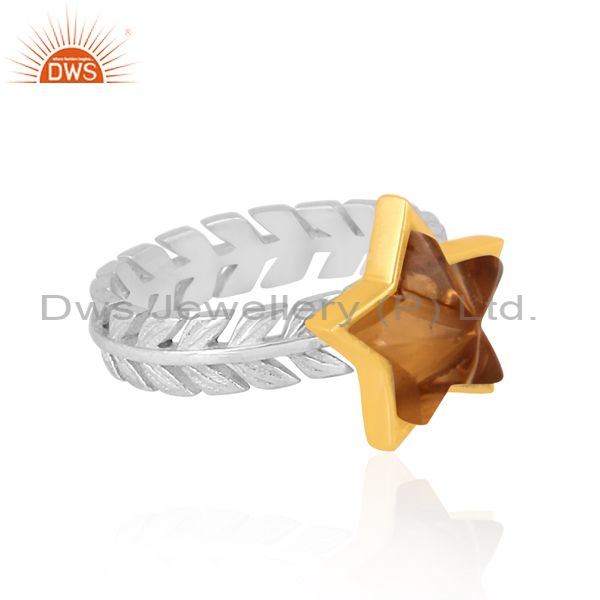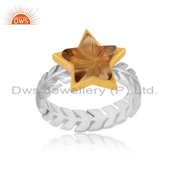 Citrine Set Fine Silver Star Charm Statement Designer Ring