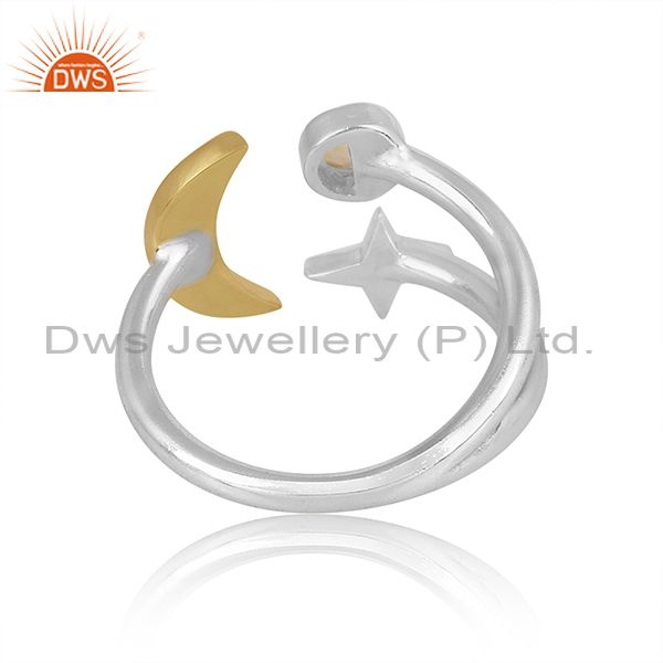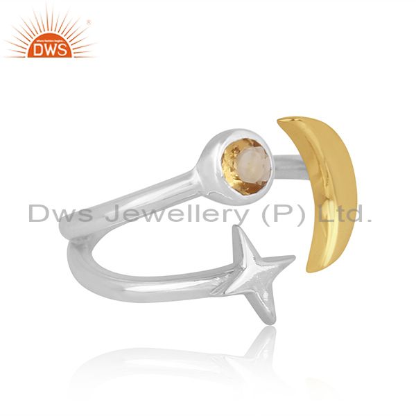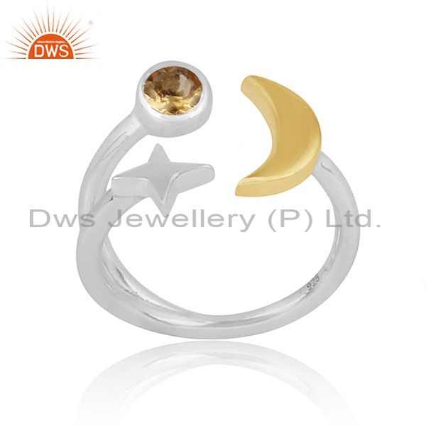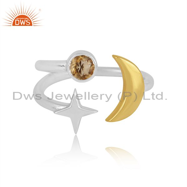 Citrine Set Gold On Fine Silver Star Moon Charm Classy Ring