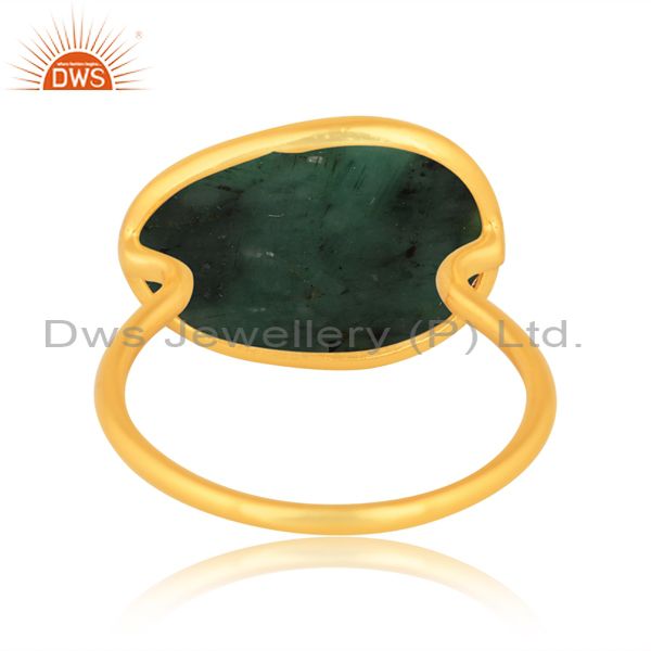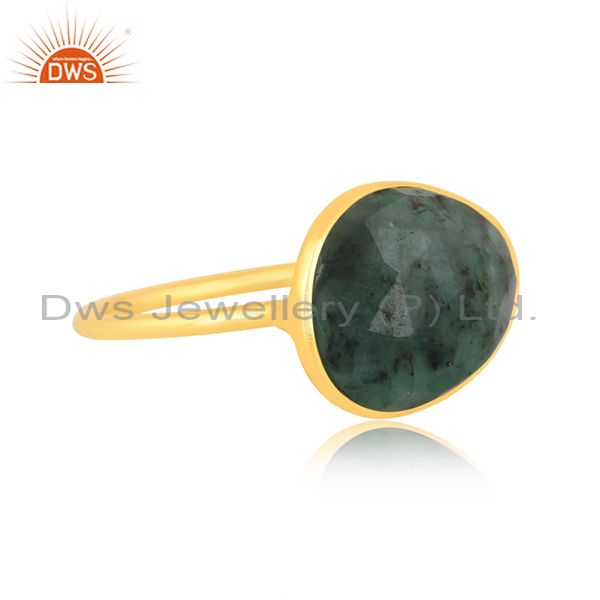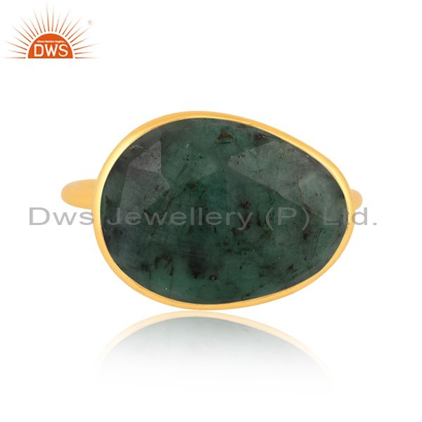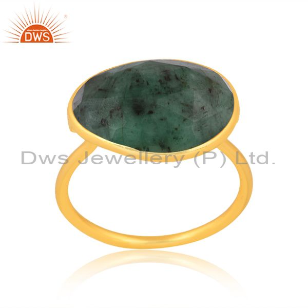 Classy 18K Emerald Studded Gold-Plated Sterling Silver Ring