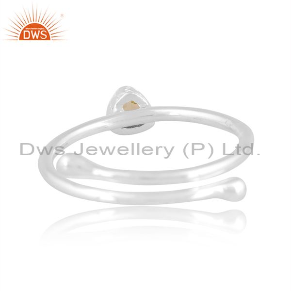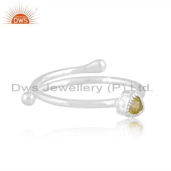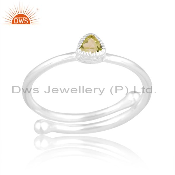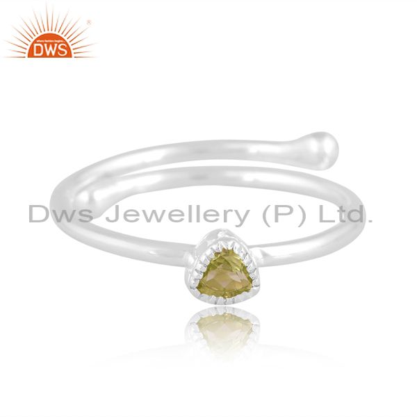Classy Peridot Cut Trillion On White Sterling Silver Ring