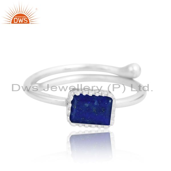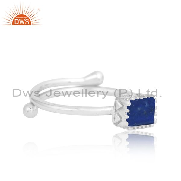 Clear Beguette Cut Lapis Band Women In Sterling Silver