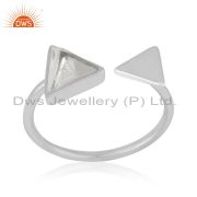 Clear Crystal Quartz Triangle Design 925 Silver Ring Jewelry