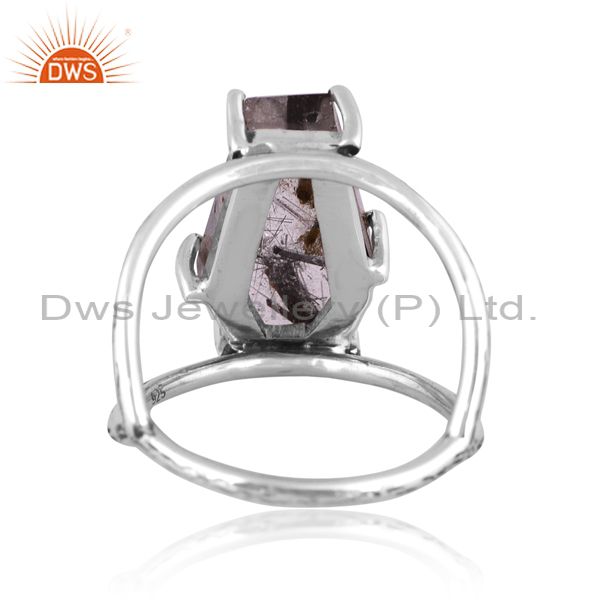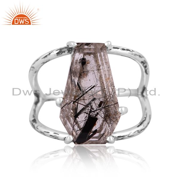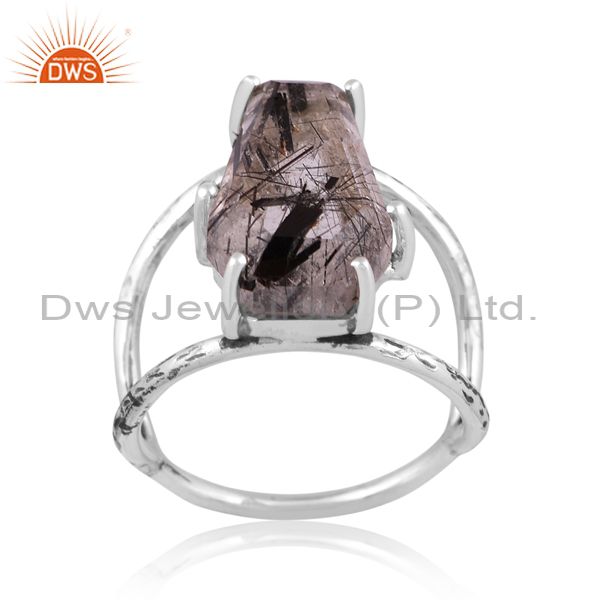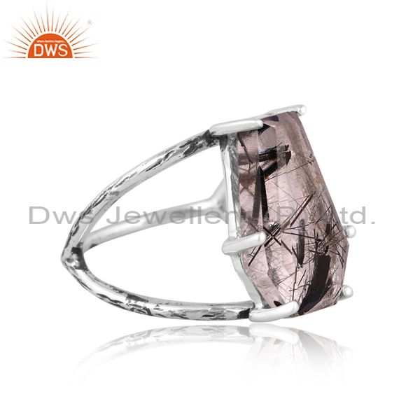 Coffin Cut Black Rutile Set Fine 925 Sterling Silver Ring