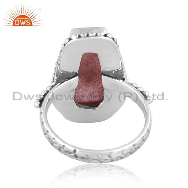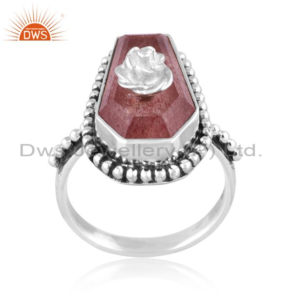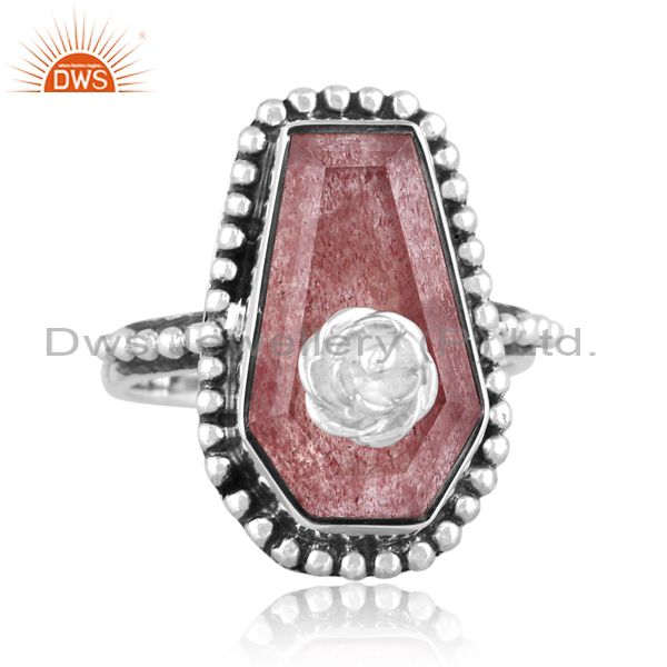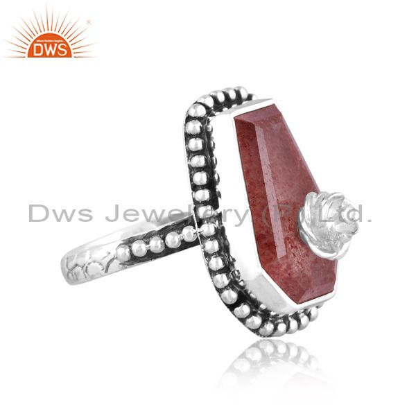 Coffin Cut Strawberry Quartz Set Oxidized 925 Silver Ring