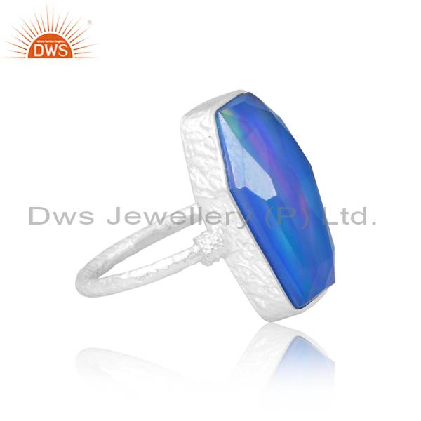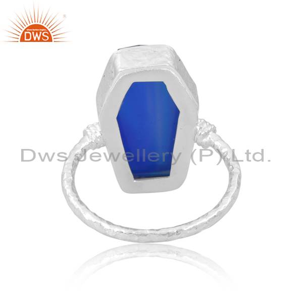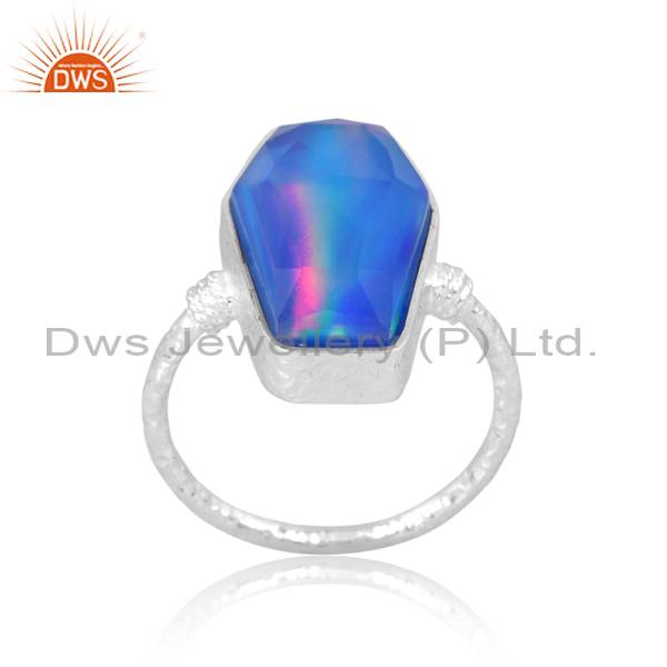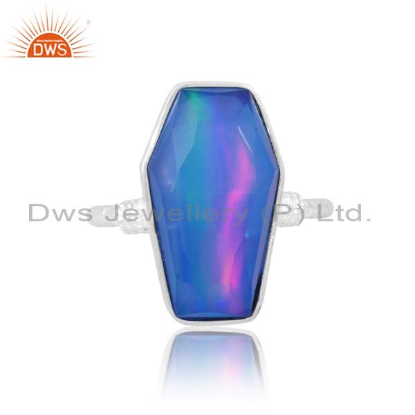 Coffin Shaped Aurora Opal Blue Finger Ring For Girls
