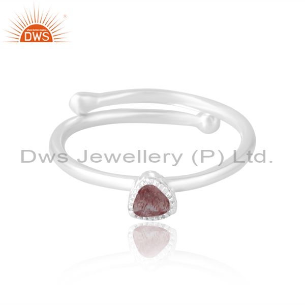 Crafted Plain Band With Trillion Strawberry Silver Women