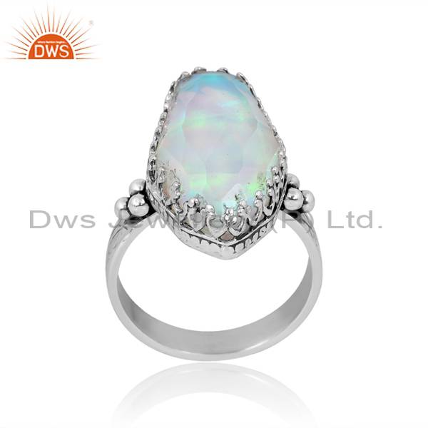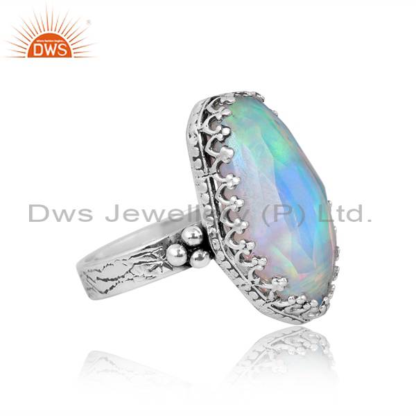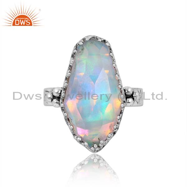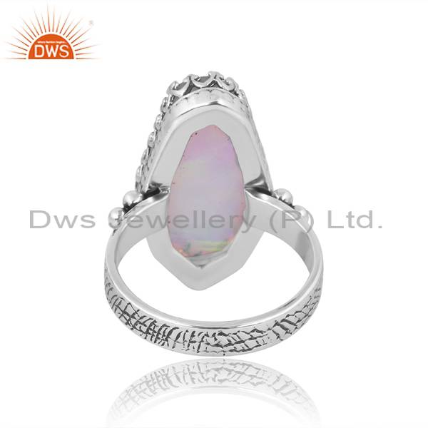 Cross Baar Texture Unshape Aurora Opal White Ring