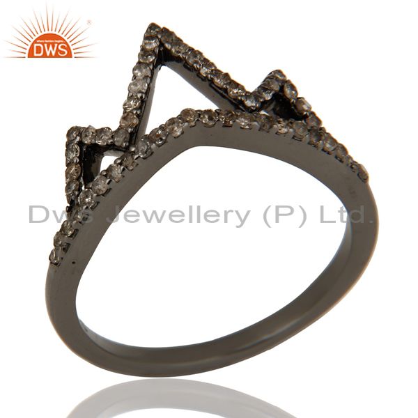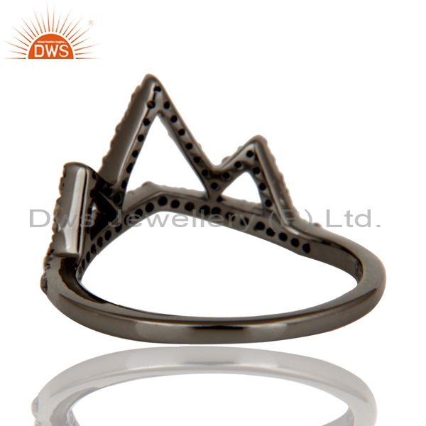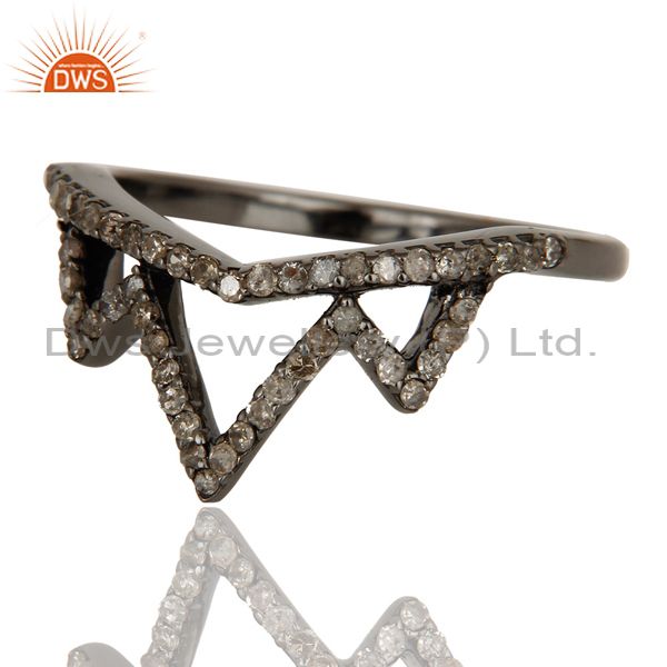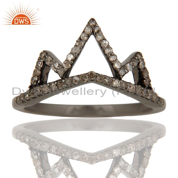 Crown Design Diamond Ring Black Oxidized Sterling Silver Loving Ring