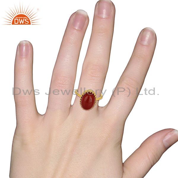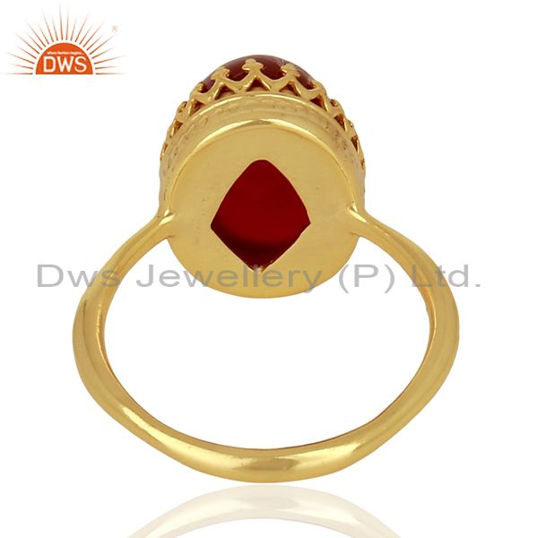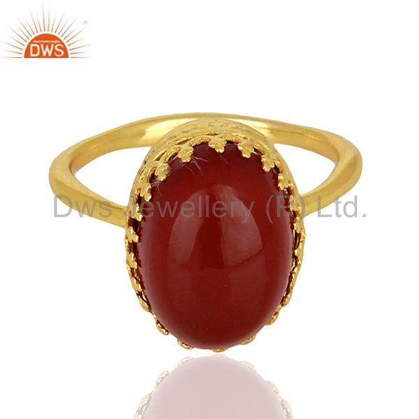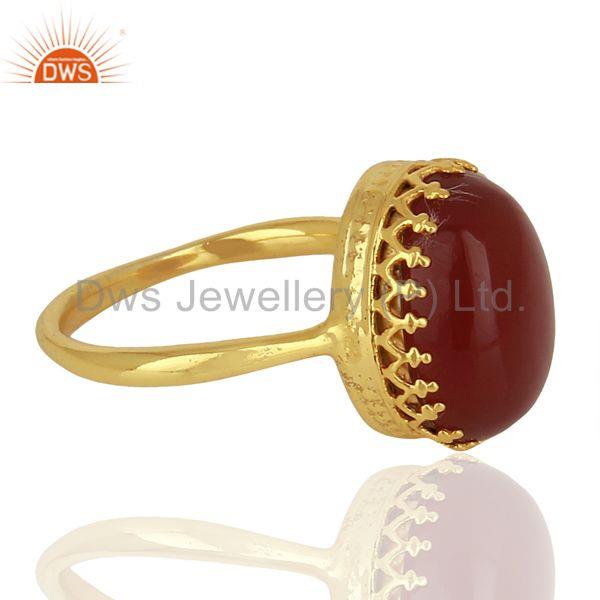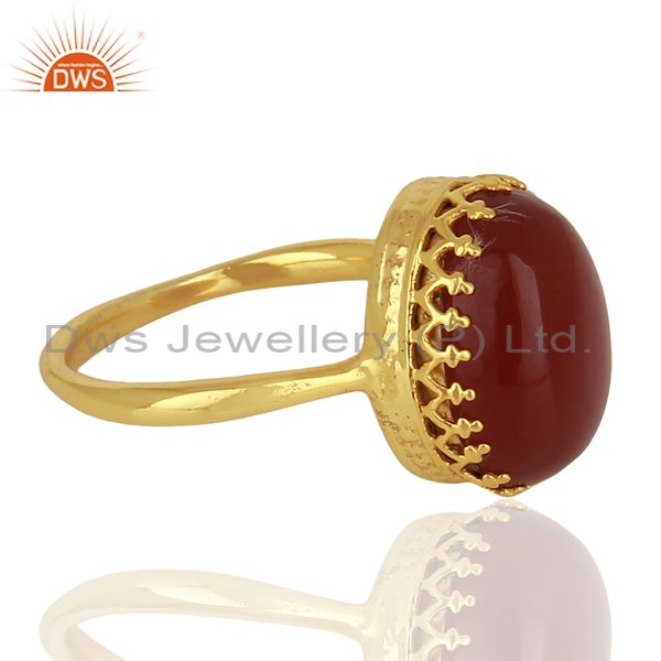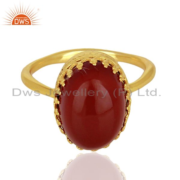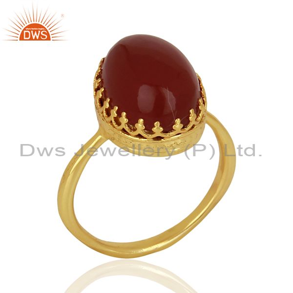 Crown Design Gold Plated Silver Ring Carnelian Gemstone Wedding Ring