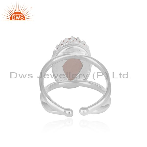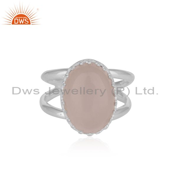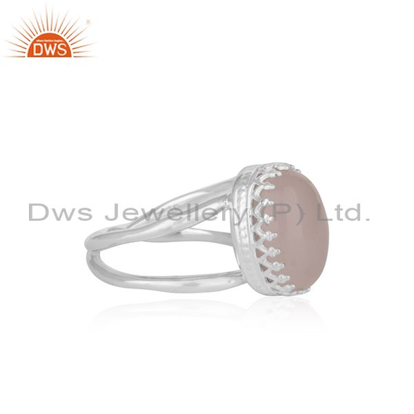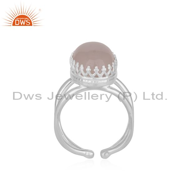 Crown Design Sterling Fine Silver Rose Chalcedony Gemstone Ring Manufacturer
