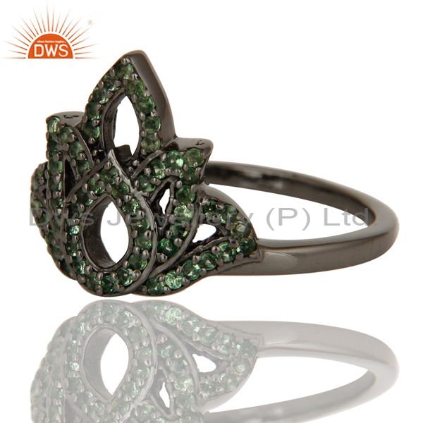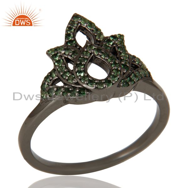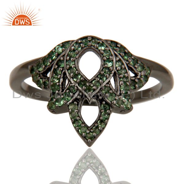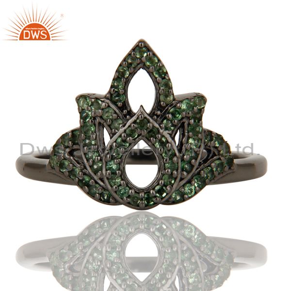 Crown Design Tsavourite and Oxidized Sterling Silver Beautiful Ring