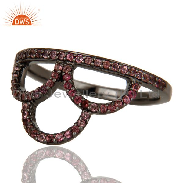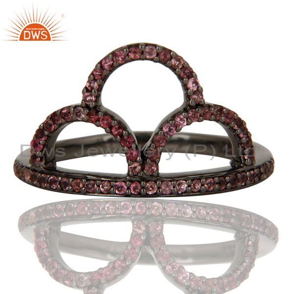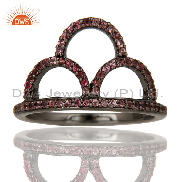 Crown Ring Pink Tourmaline and Oxidized Sterling Silver Designer Ring