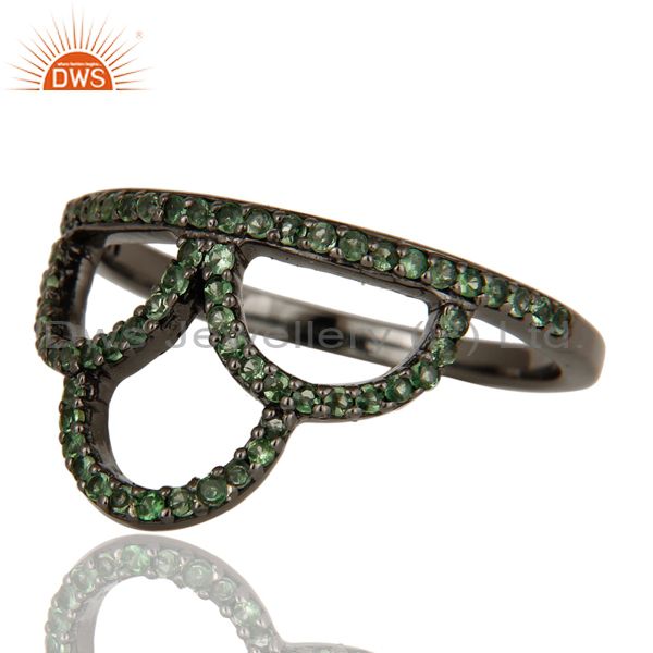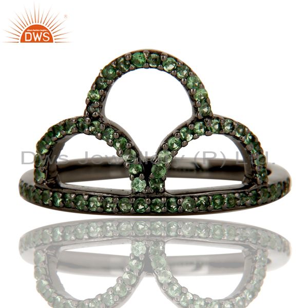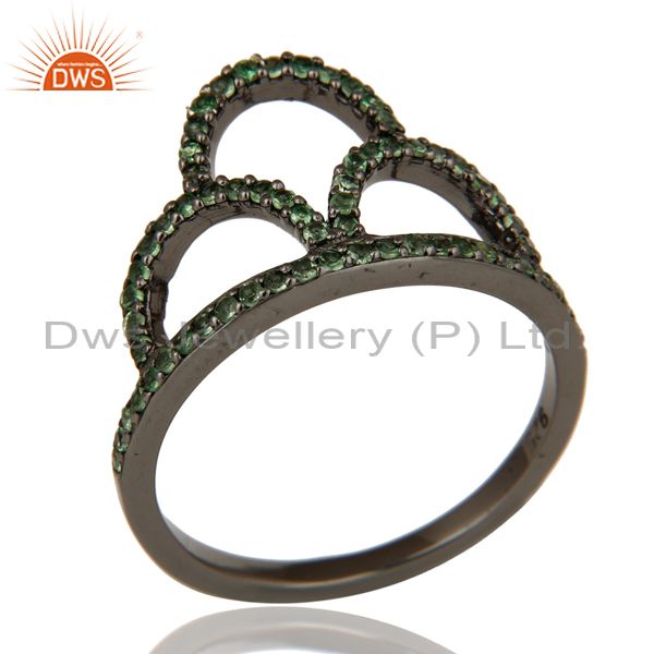 Crown Ring Tsavourite and Oxidized Sterling Silver Designer Ring