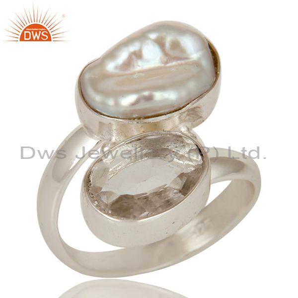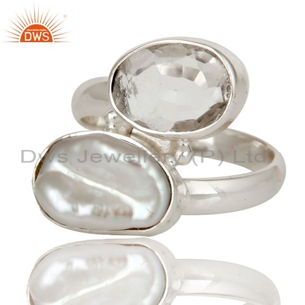 Crystal And Fresh Water Pearl Solid Sterling Silver Gemstone Ring