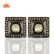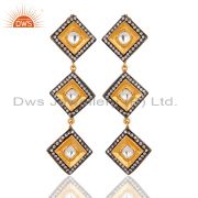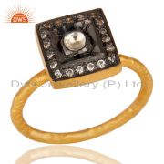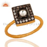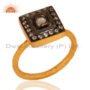 Crystal Polki Gold Plated Solid Sterling Silver Hammered Band Ring - For Women