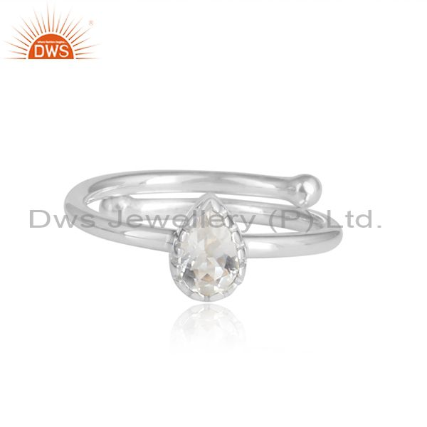 CRYSTAL QUARTZ CUT Sterling silver white ring