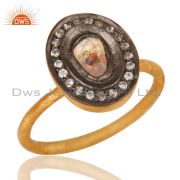 Crystal Quartz Cz Polki Handmade Hammered Ring In 14K Gold Over Sterling Silver