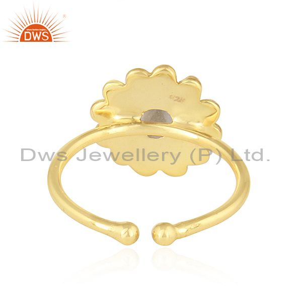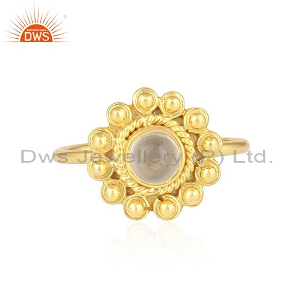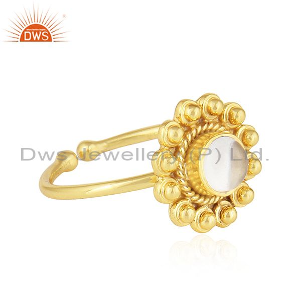 Crystal Quartz Gemstone Designer Gold Plated Handmade 925 Silver Rings