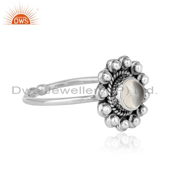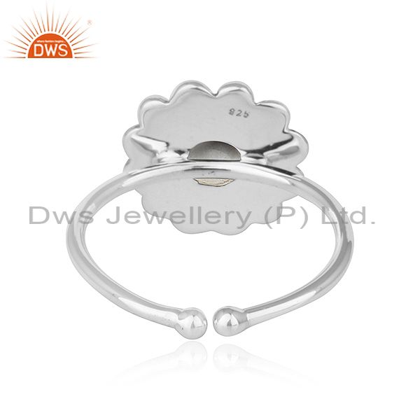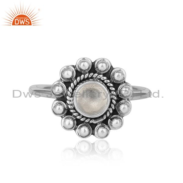 Crystal Quartz Gemstone Flower Designer Oxidized Silver Ring Jewelry