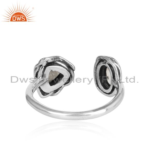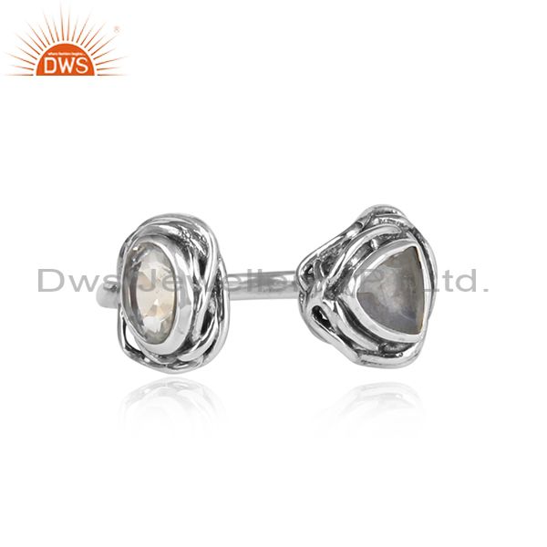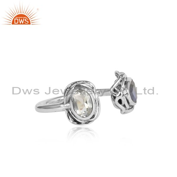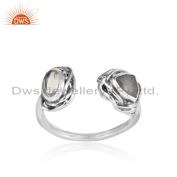 Crystal Quartz, Labradorite Set Oxidized Silver Wrapped Ring