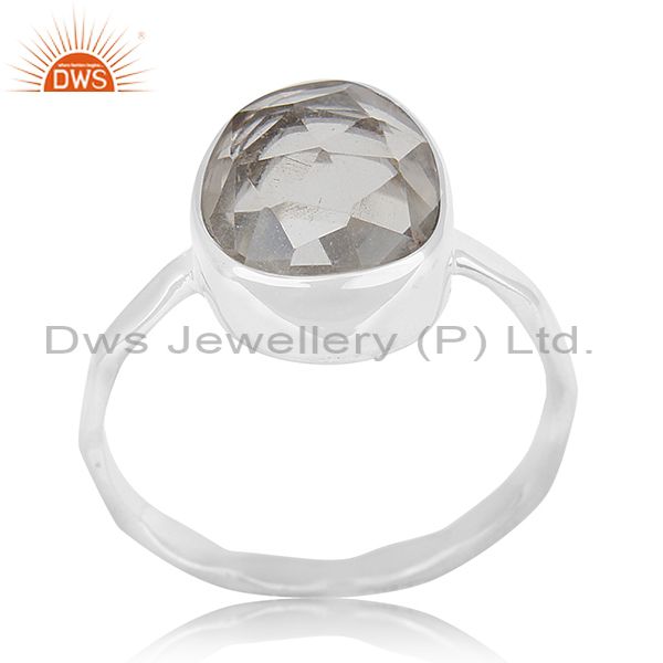 Crystal Quartz Multi Checker 925 Sterling Silver Ring Manufacturer For Brands