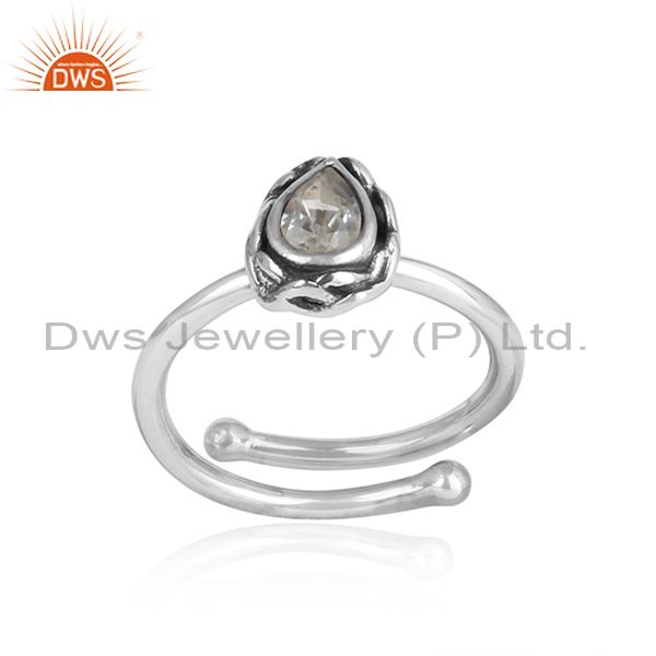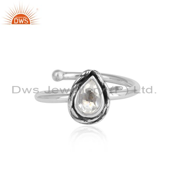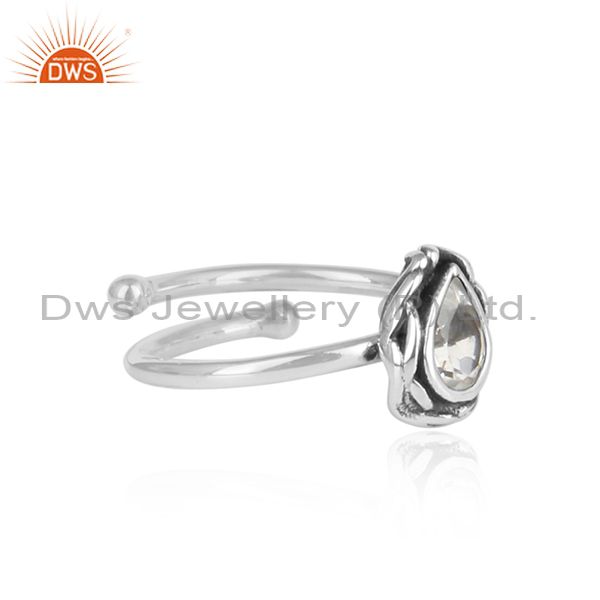 CRYSTAL QUARTZ pear shaped sterling silver adjustable ring