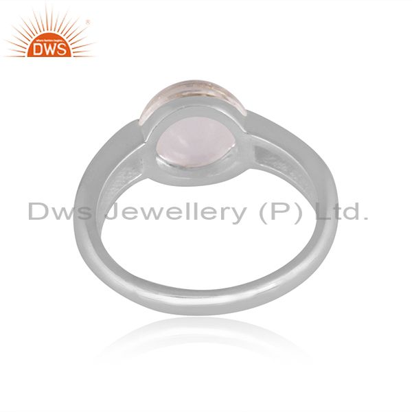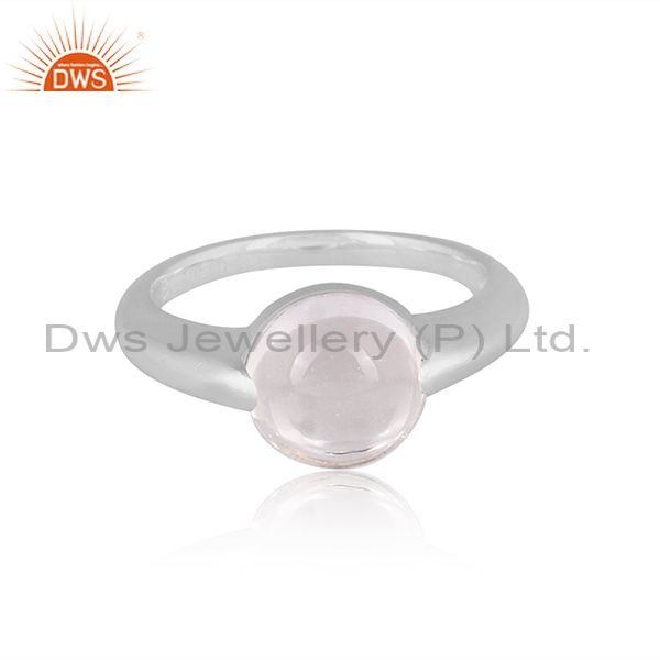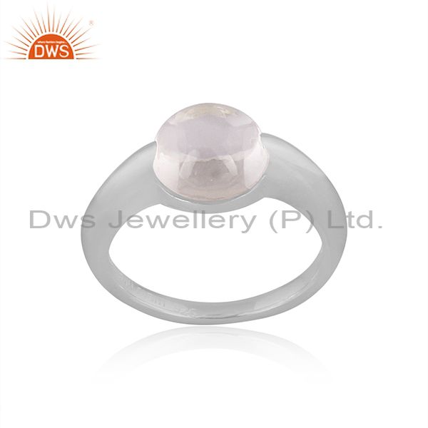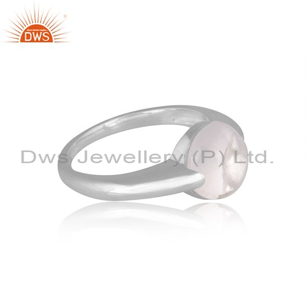 Crystal Quartz Set Fine 925 Silver Handhammered Classic Ring