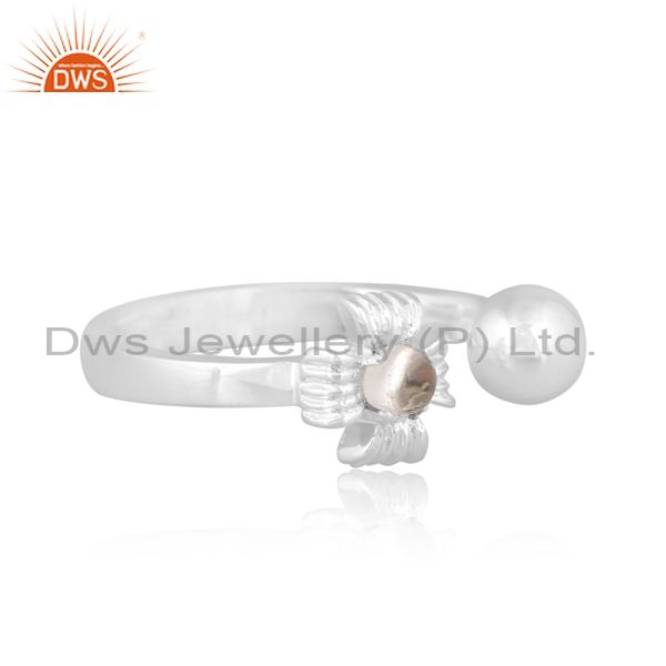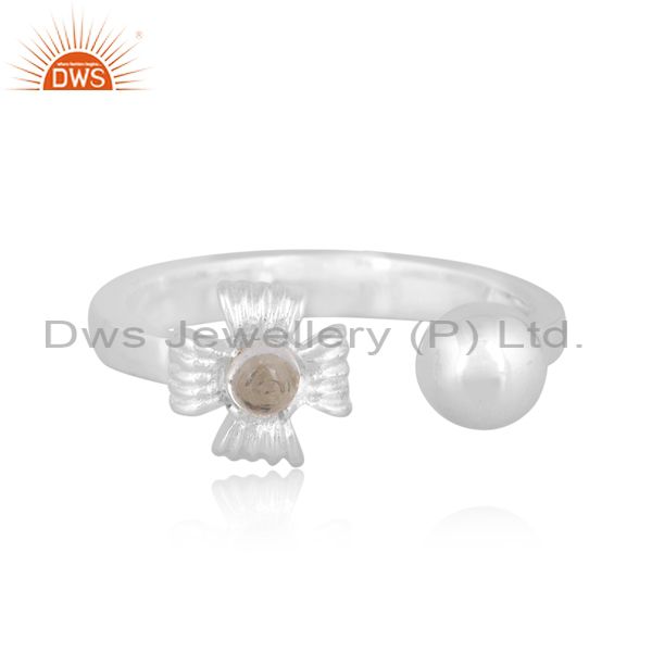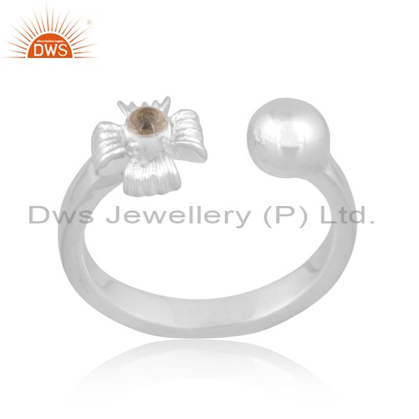 Crystal Quartz Set Fine Sterling Silver Handmade Open Ring