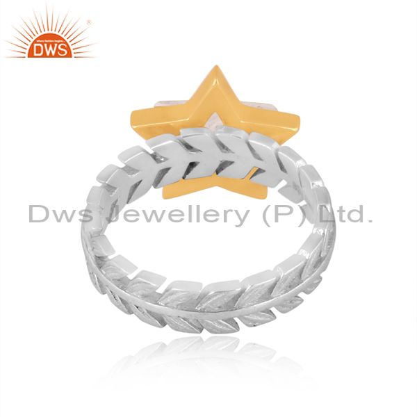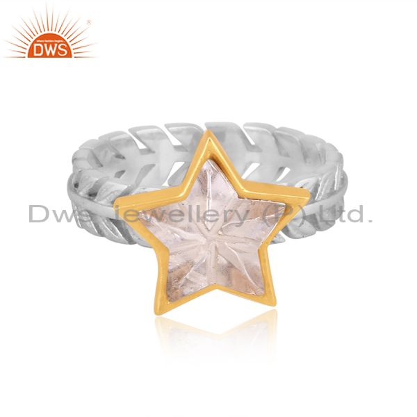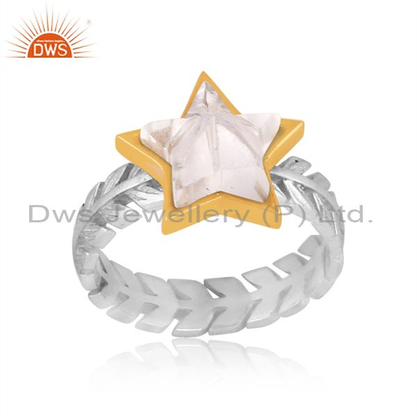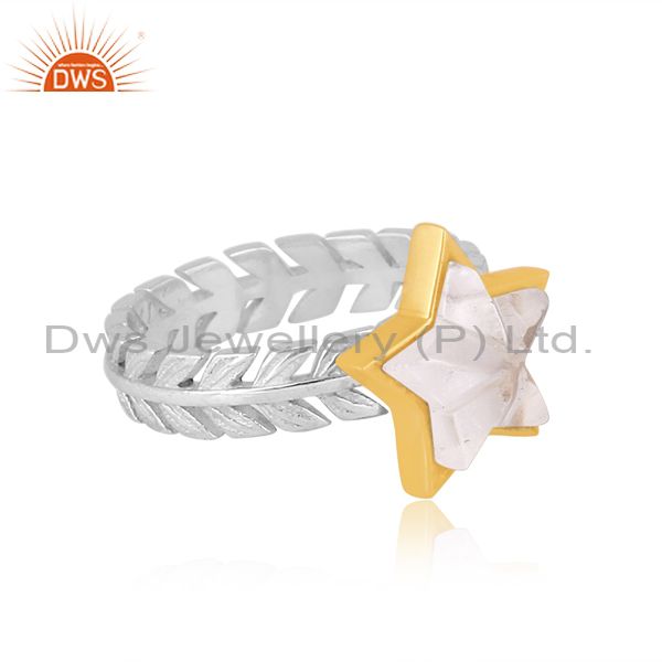 Crystal Quartz Set Gold On Fine 925 Silver Star Shaped Ring