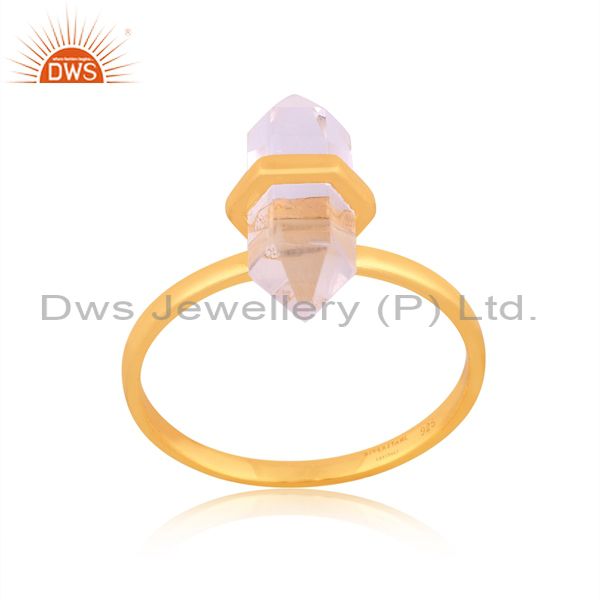 Crystal Quartz Set Gold On Sterling Silver Statement Ring
