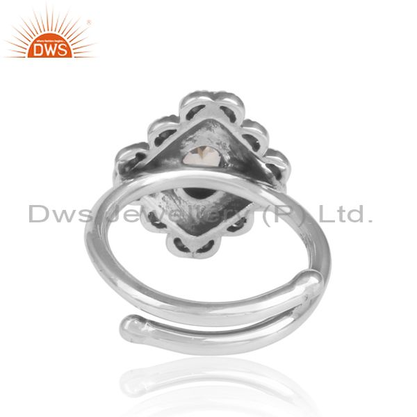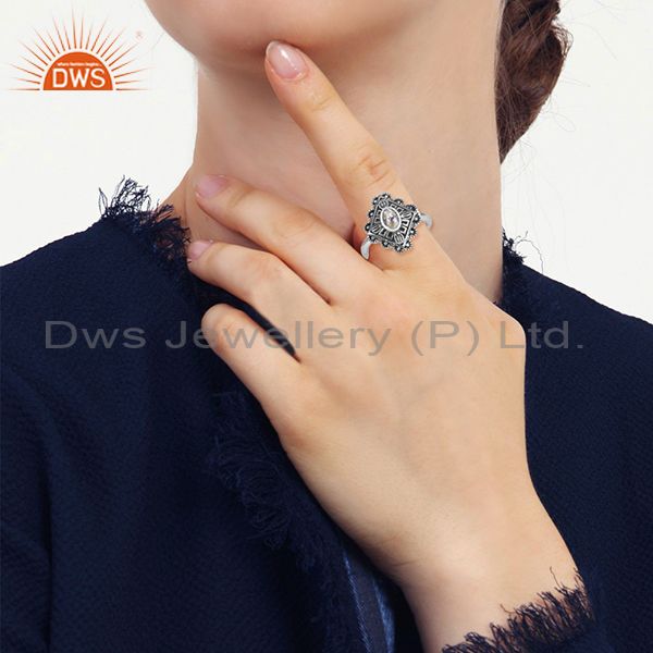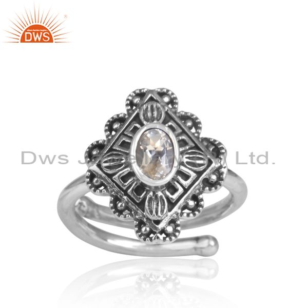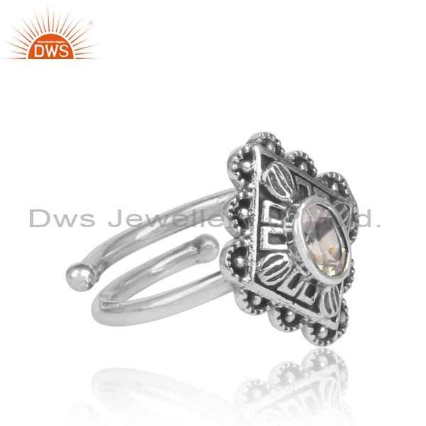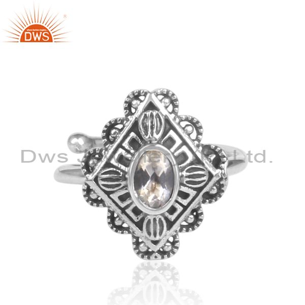 Crystal Quartz Set Traditional Oxidized Silver Rhombus Ring