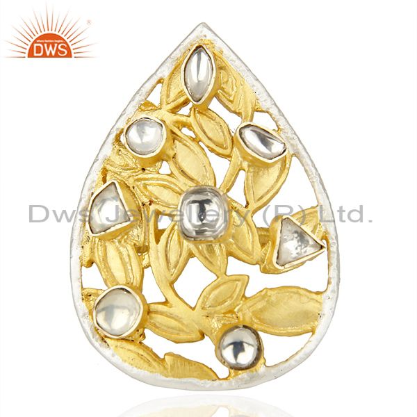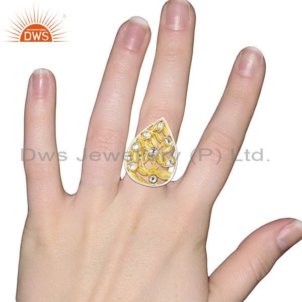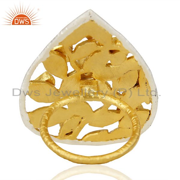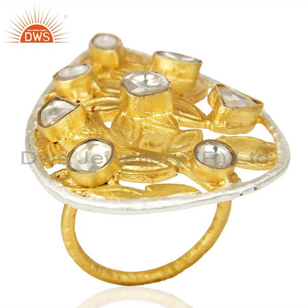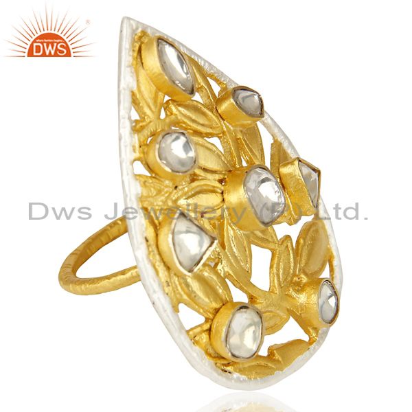 Crystal Quartz Stackable 14K Yellow Gold Plated Brass Ring Fashion Jewelry