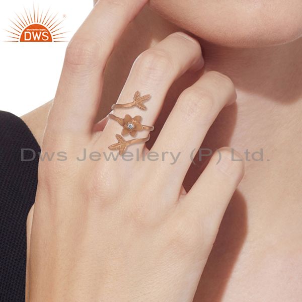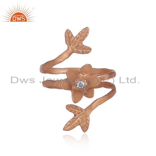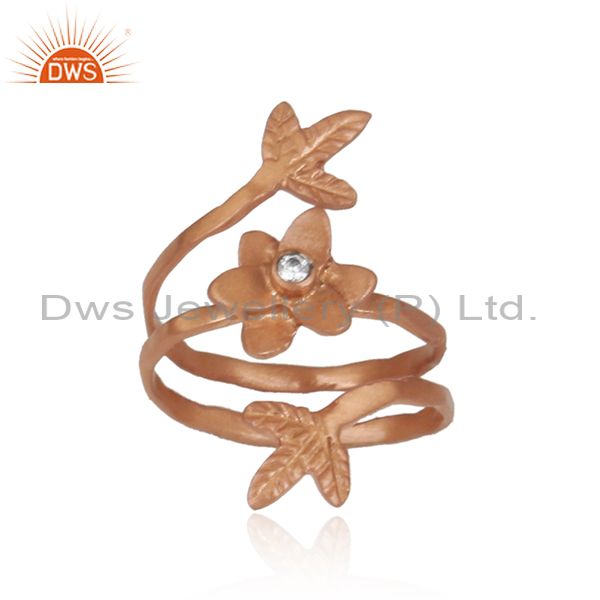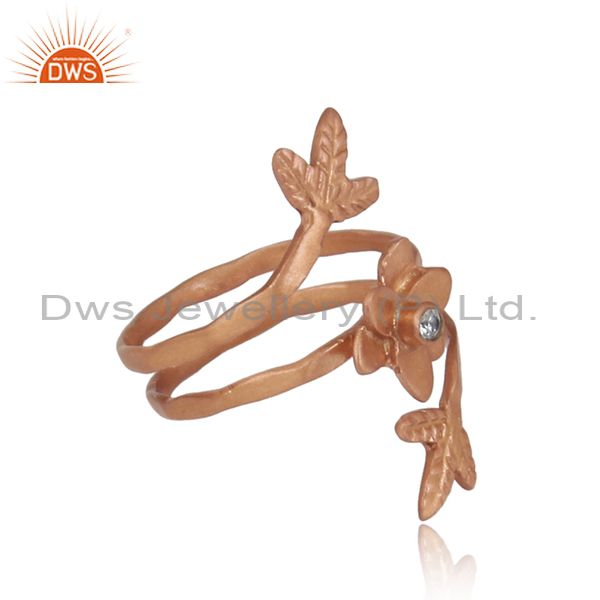 Cubic Zirconia Brass Rose Gold Plated Designer Twist Ring