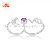 Custom Sterling Silver Love Initial Amethyst Gemstone Ring Manufacturer India
