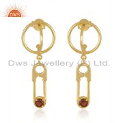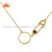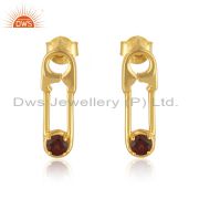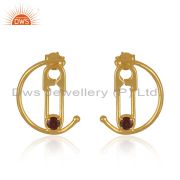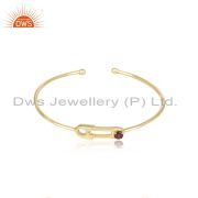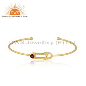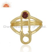 Customized Pin Design 925 Silver Gold Plated Garnet Gemstone Ring