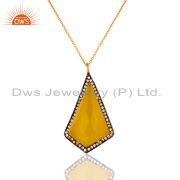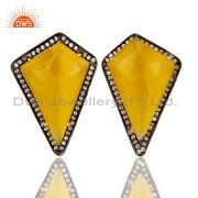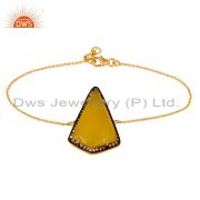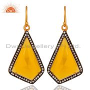 CZ & Faceted Yellow Moonstone 18K Gold Plated Sterling Silver Designer Ring