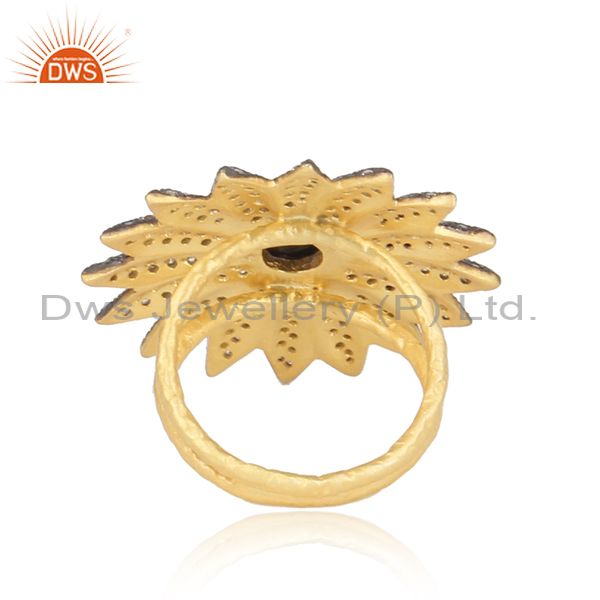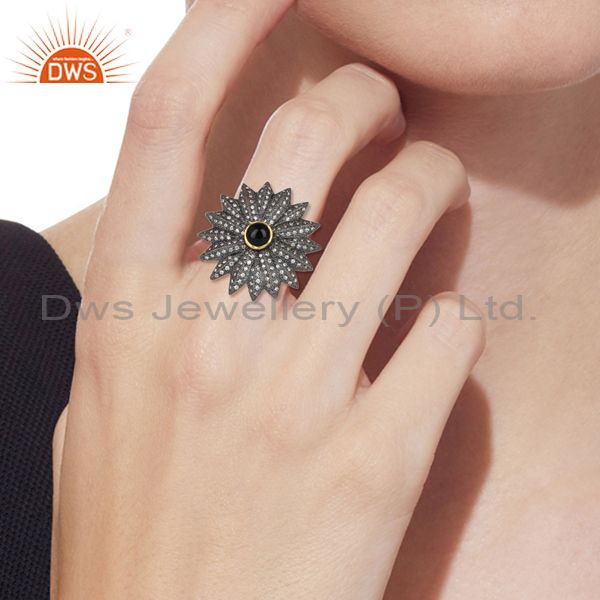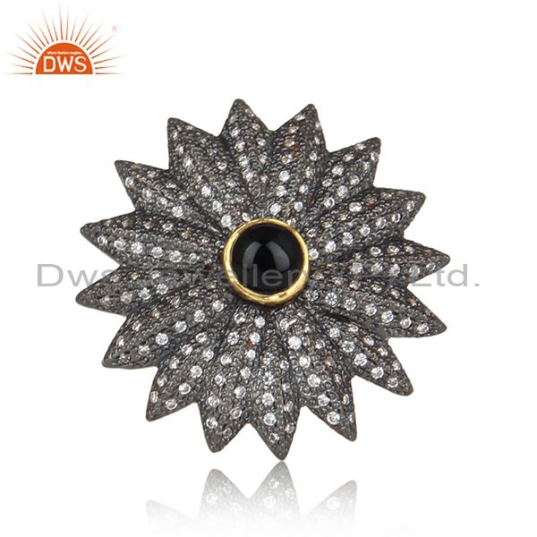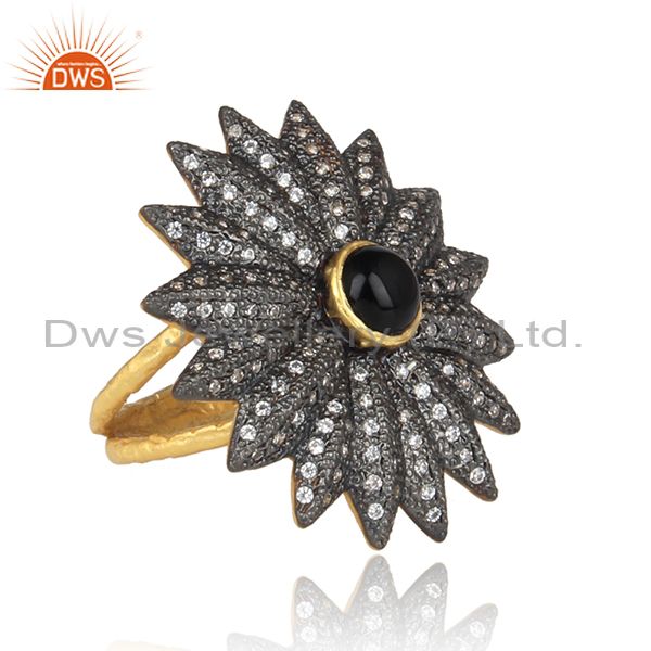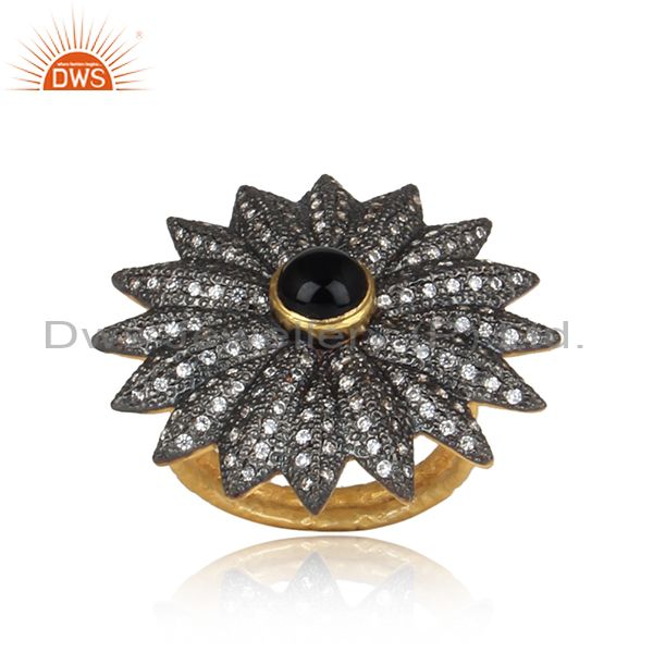 CZ And Black Onyx Gold And Black On Silver Bold Floral Ring
