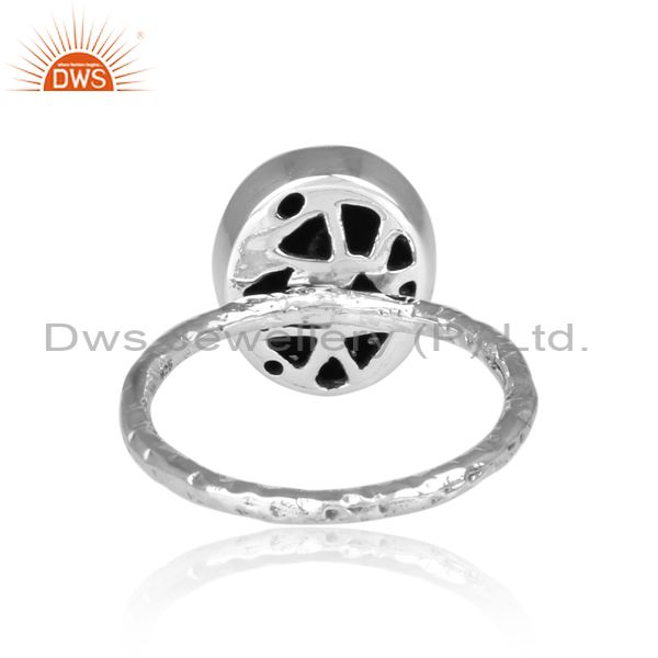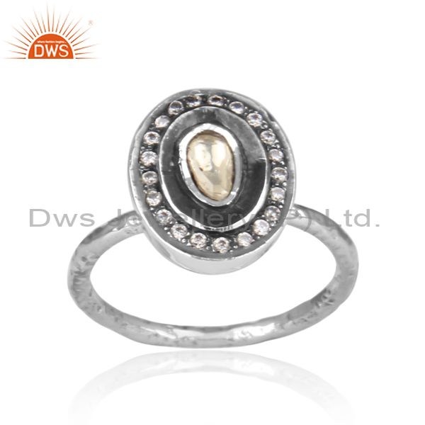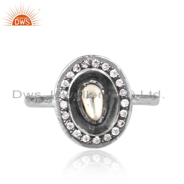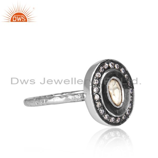 CZ And Crystal Quartz Set Oxidized Silver Oval Shaped Ring