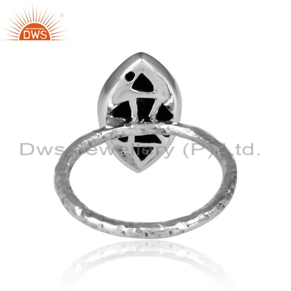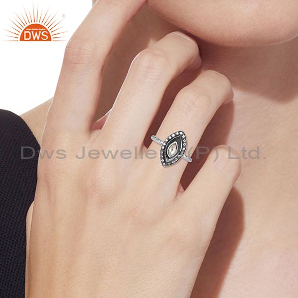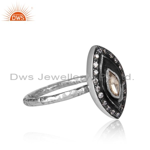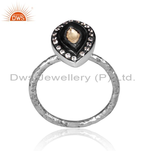 CZ And Crystal Quartz Set Oxidized Silver Tear Shaped Ring