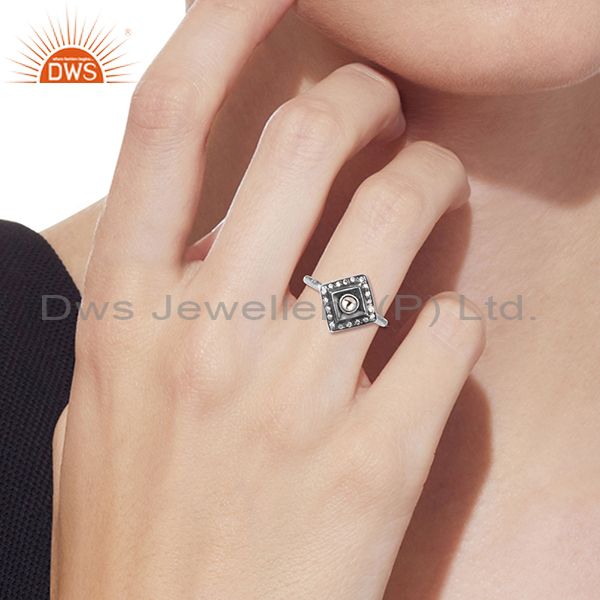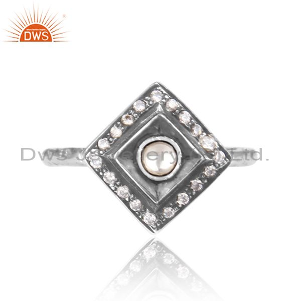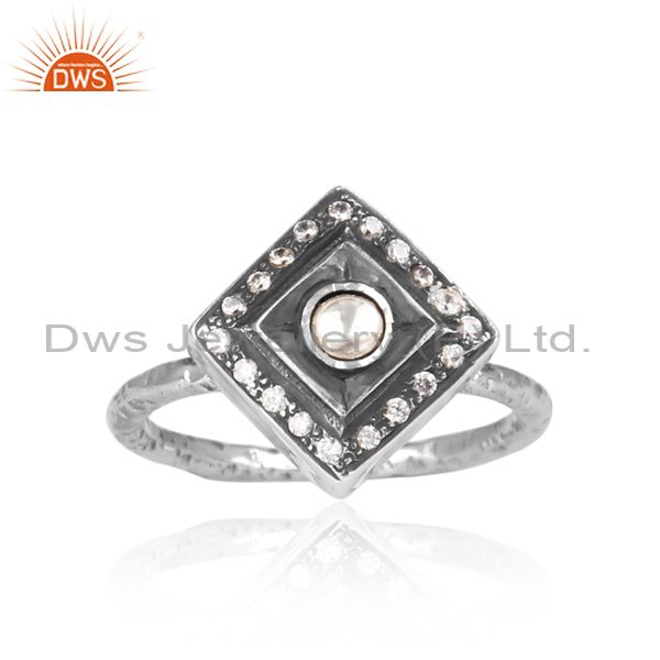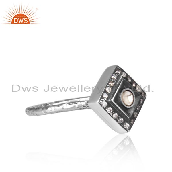 CZ And Crystal Quartz Set Oxidized Silver Traditional Ring