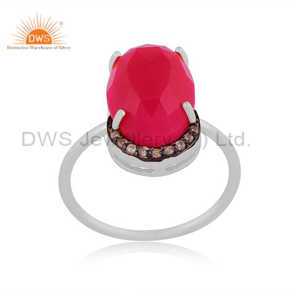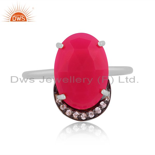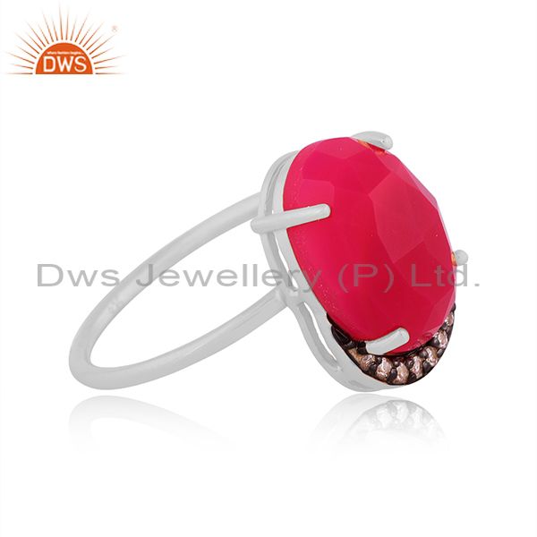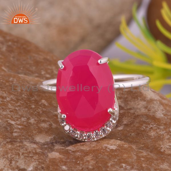 Cz And Pink Chalcedony Set Fine 925 Sterling Silver Earrings