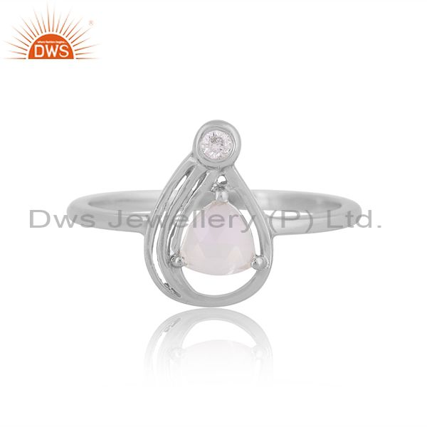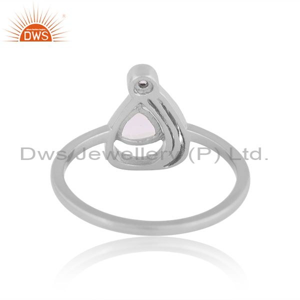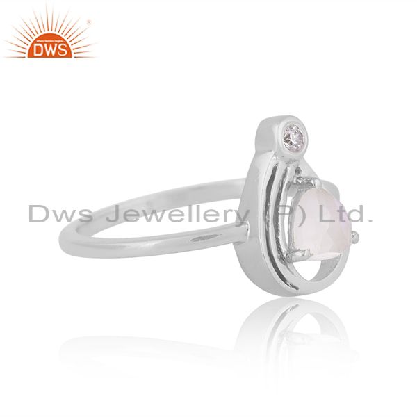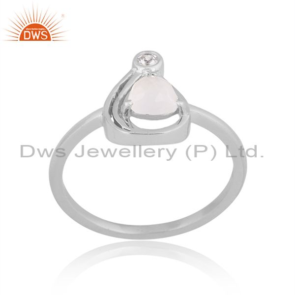 Cz And Rainbow Moon Stone Fine Silver Triangle Charm Ring