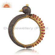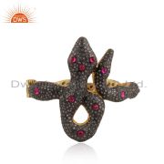 CZ And Red Imitation Stone Set Traditional Gold On Silver Ring