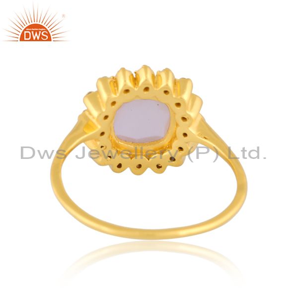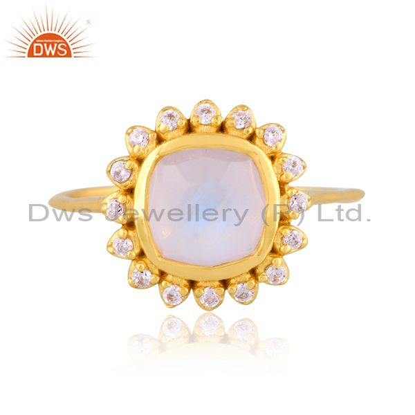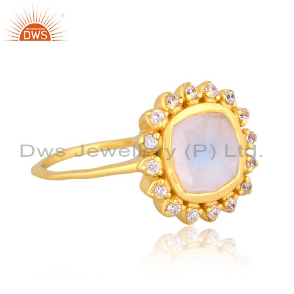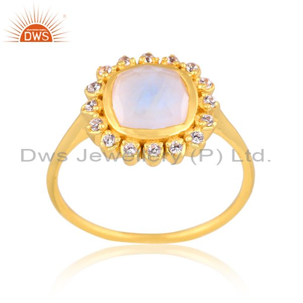Cz And Square Rainbow Moon Stone Set Handmade 18K Gold Ring